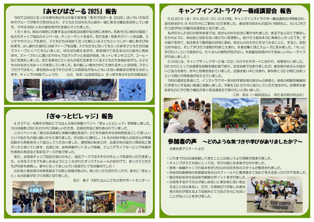(塩谷丸山登山、北海道キャンプフェスタ他)